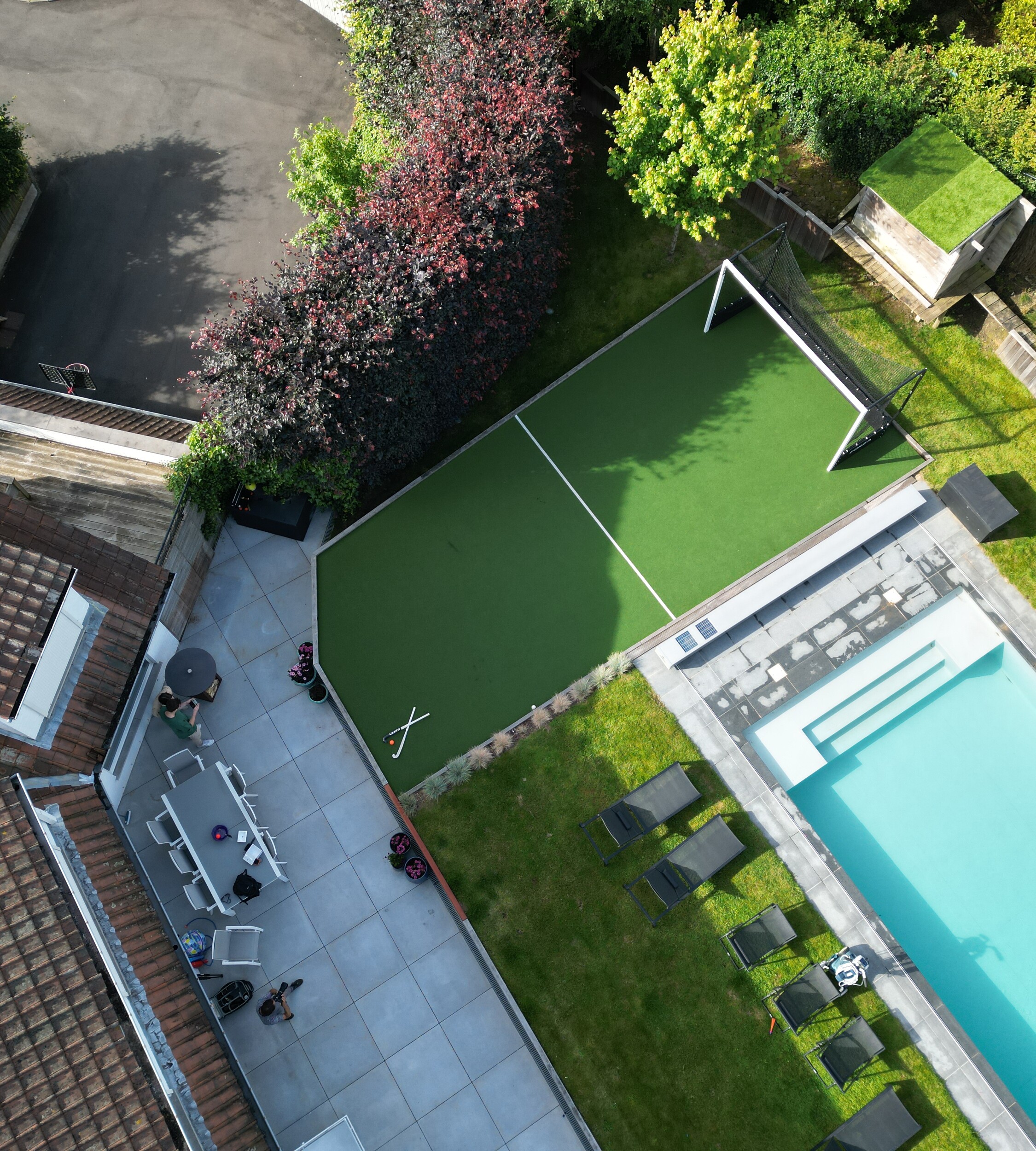 Wat me misschien nog wel het meest plezier doet, is hoe dit veldje het hart van onze tuin is geworden. Onze kinderen nodigen vaak vrienden uit - spontaan na school of in het weekend. Er wordt gelachen, gescoord, en soms zelfs fanatiek getraind. Als ouder weet je dat je ze iets geeft wat bijdraagt aan hun ontwikkeling en geluk.