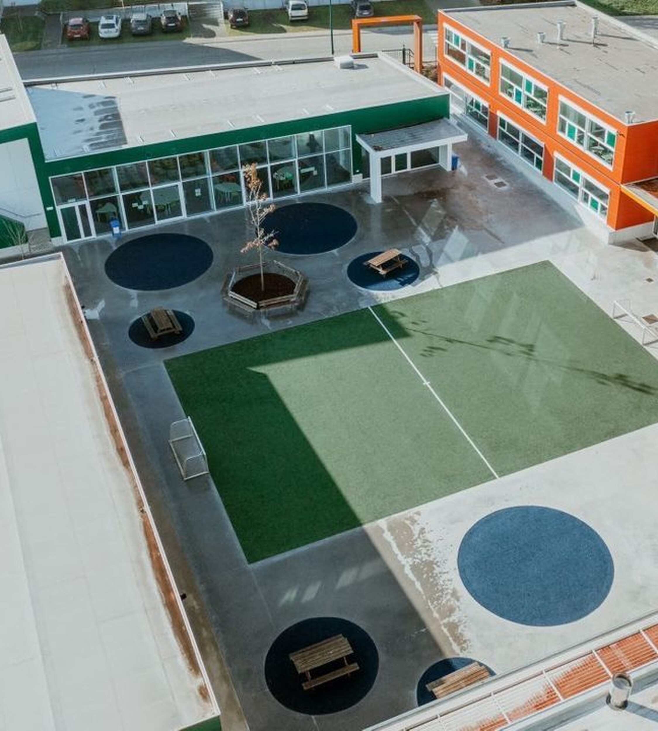 Multifunctioneel en uitnodigend: het ontwerp omvat naast sport ook een interactieve en fantasierijke speelzone voor jonge kinderen.